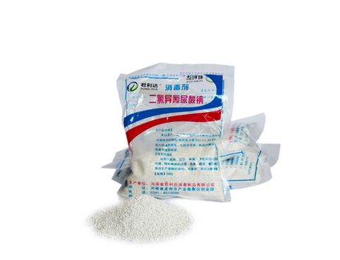 外觀:白色結(jié)晶粉劑、粒劑;規(guī)格:200g/袋*50袋/箱;有效氯含量:≥58%; PH值(1%水溶液):5.0~7.0; 保質(zhì)期:2年;